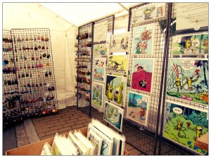 Outre les stands de bandes dessinées, on peut y trouver énormément de produits dérivés. Tintin, Spirou, Star Wars, Astérix, Batman, les héros se déclinent en t-shirts, mugs, posters, casquettes, porte-clés et autres objets phares. Dur dur de résister à tous ces beaux objets de collection…