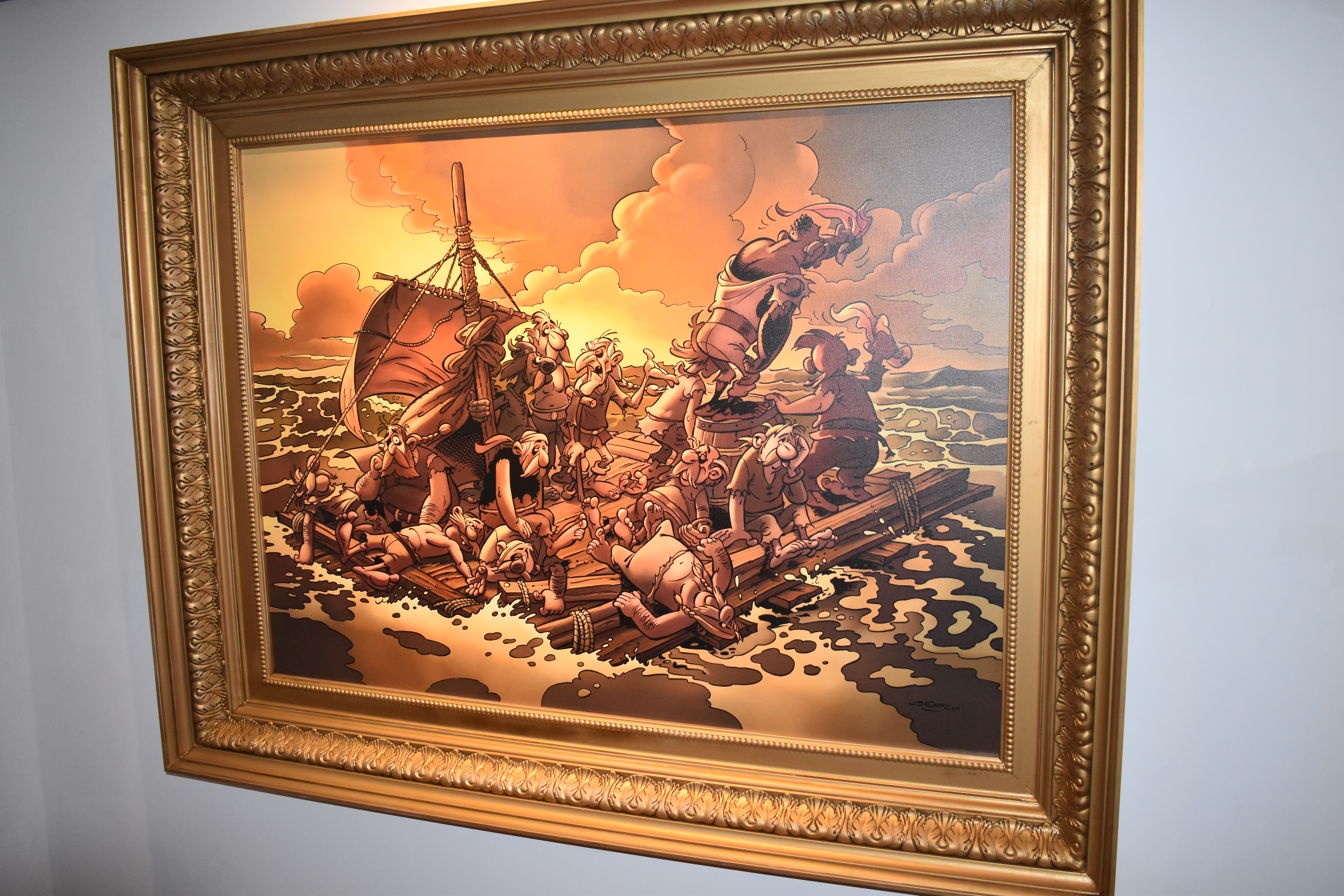 Le visiteur découvre en parallèle les divers pays par lesquels sont déjà passés  nos deux héros, le lien qui est fait avec l’Histoire avec un grand H, même si elle s’avère souvent détournée, ainsi que des parodies de grands tableaux : Obélix en « Homme de Vitruve » ou encore Bonnemine représentant la « Liberté guidant le peuple ».