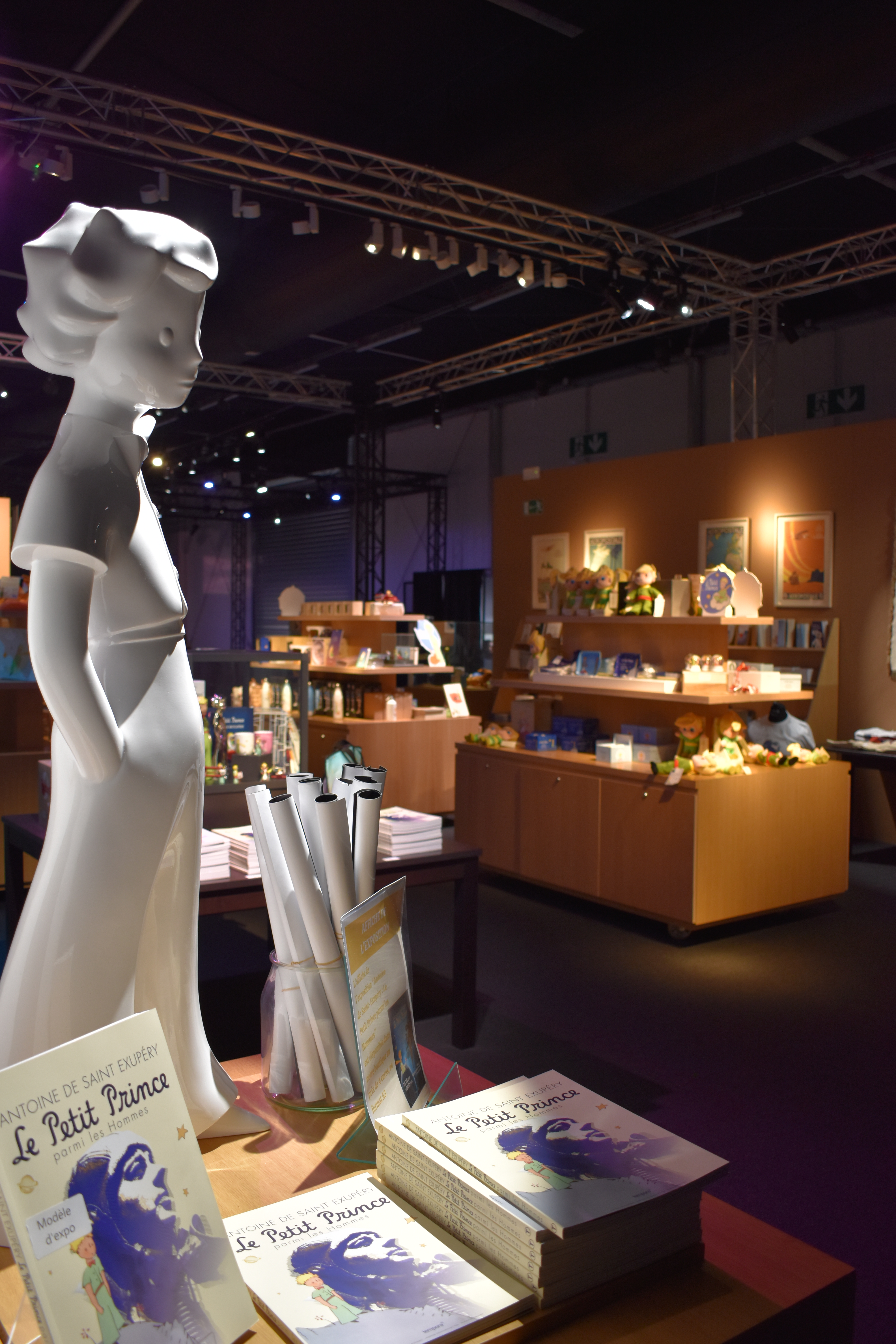A travers des objets, des manuscrits, des photographies et les paroles de sa chère mère, le visiteur découvre la vie très dense d’Antoine de Saint-Exupéry. On y découvre certes son histoire, mais aussi et surtout ses pensées. La scénographie de l’exposition est faite pour ne pas s’ennuyer : audioguide, textes courts, reliques, spectacle, atelier interactif, les supports sont nombreux et variés. Le parcours est ponctué d’instants féériques qui ont le mérite, en plus de nous faire rêver, de nous réchauffer dans un hall malheureusement glacial. Glacial comme le prix des souvenirs à la sortie ; deux bémols mais qui ne gâchent en rien le côté poétique de l’exposition.